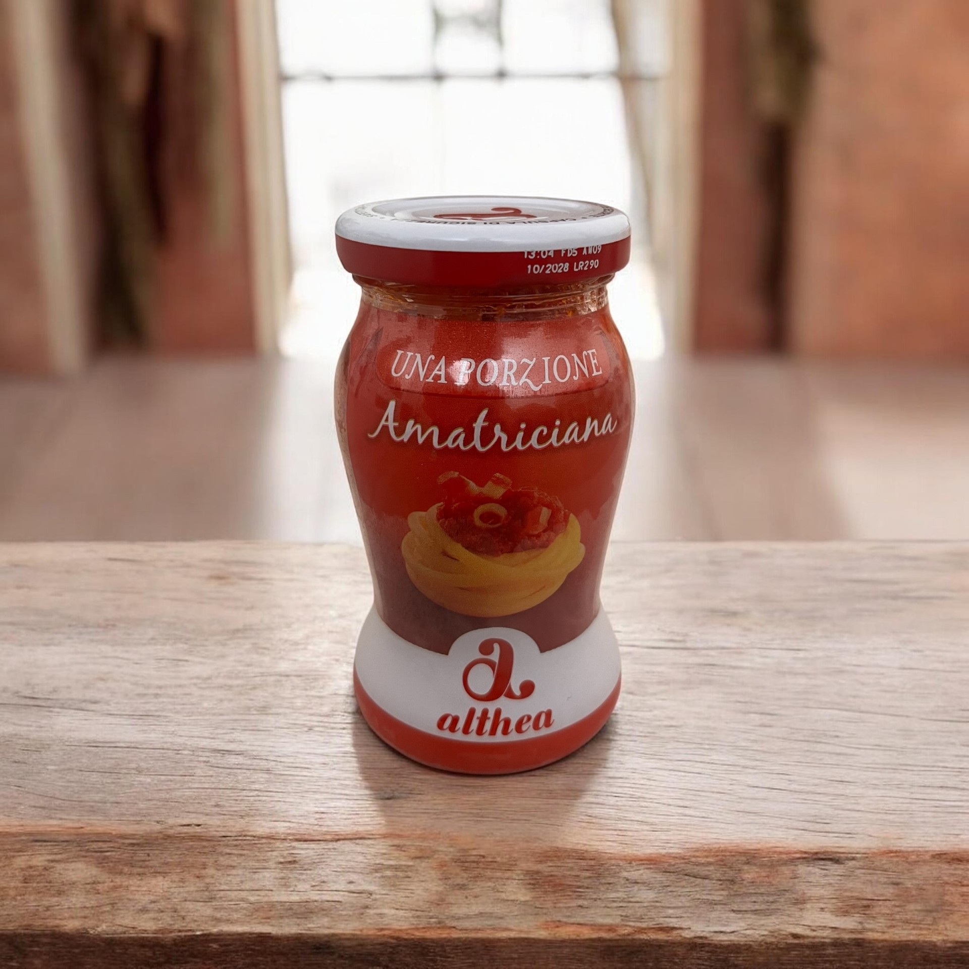 Althea Amatriciana (120 g) je tradičná talianska omáčka v praktickom jednoporciovom balení. Receptúra vychádza z klasiky regiónu Lazio (okolie Ríma) a spája sladkosť paradajok s výraznou chuťou slaniny.