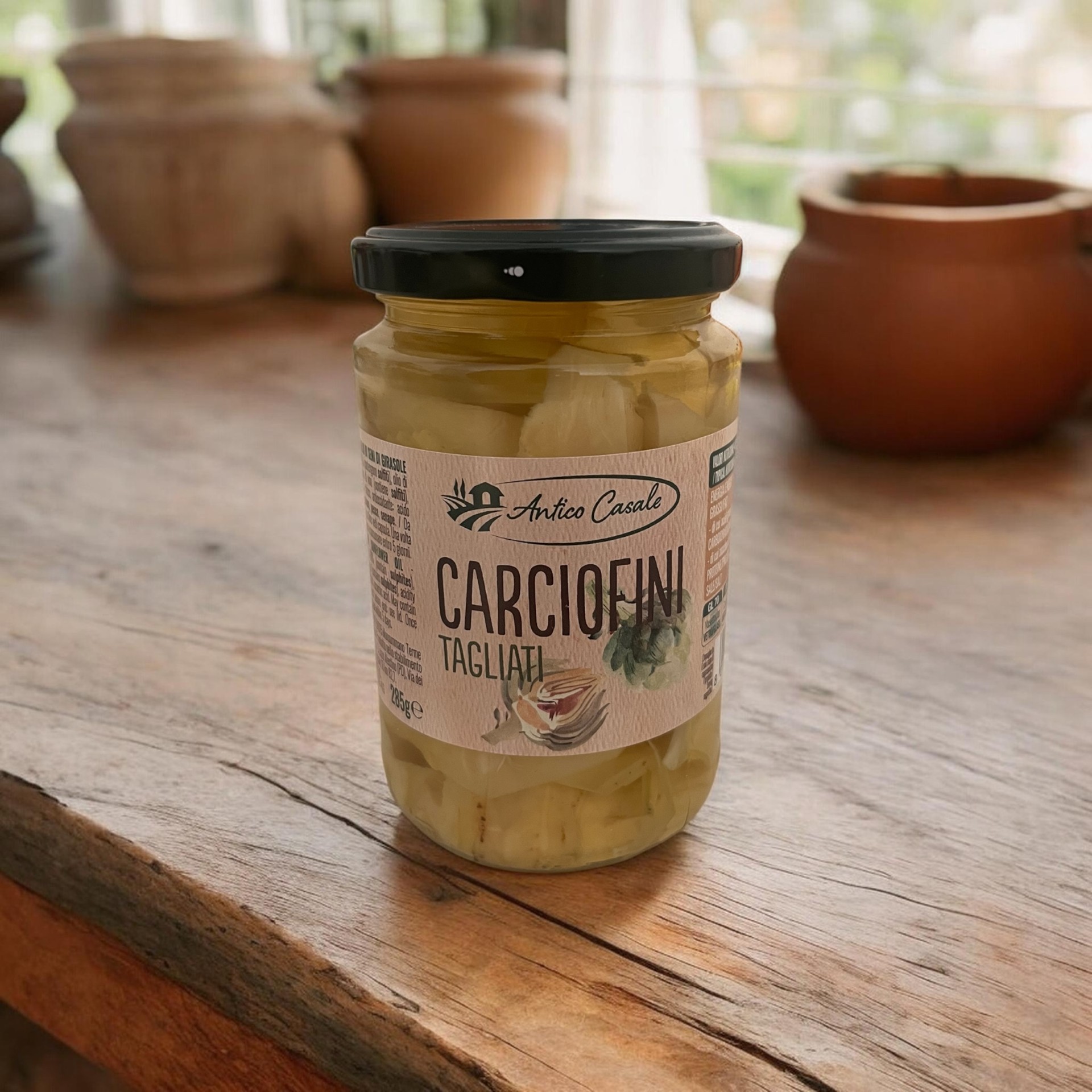 Antico Casale Carciofini Tagliati (285 g) sú krájané talianske artičoky naložené v slnečnicovom oleji s pridaním byliniek. Značka Antico Casale je známa férovým pomerom medzi kvalitou a cenou.