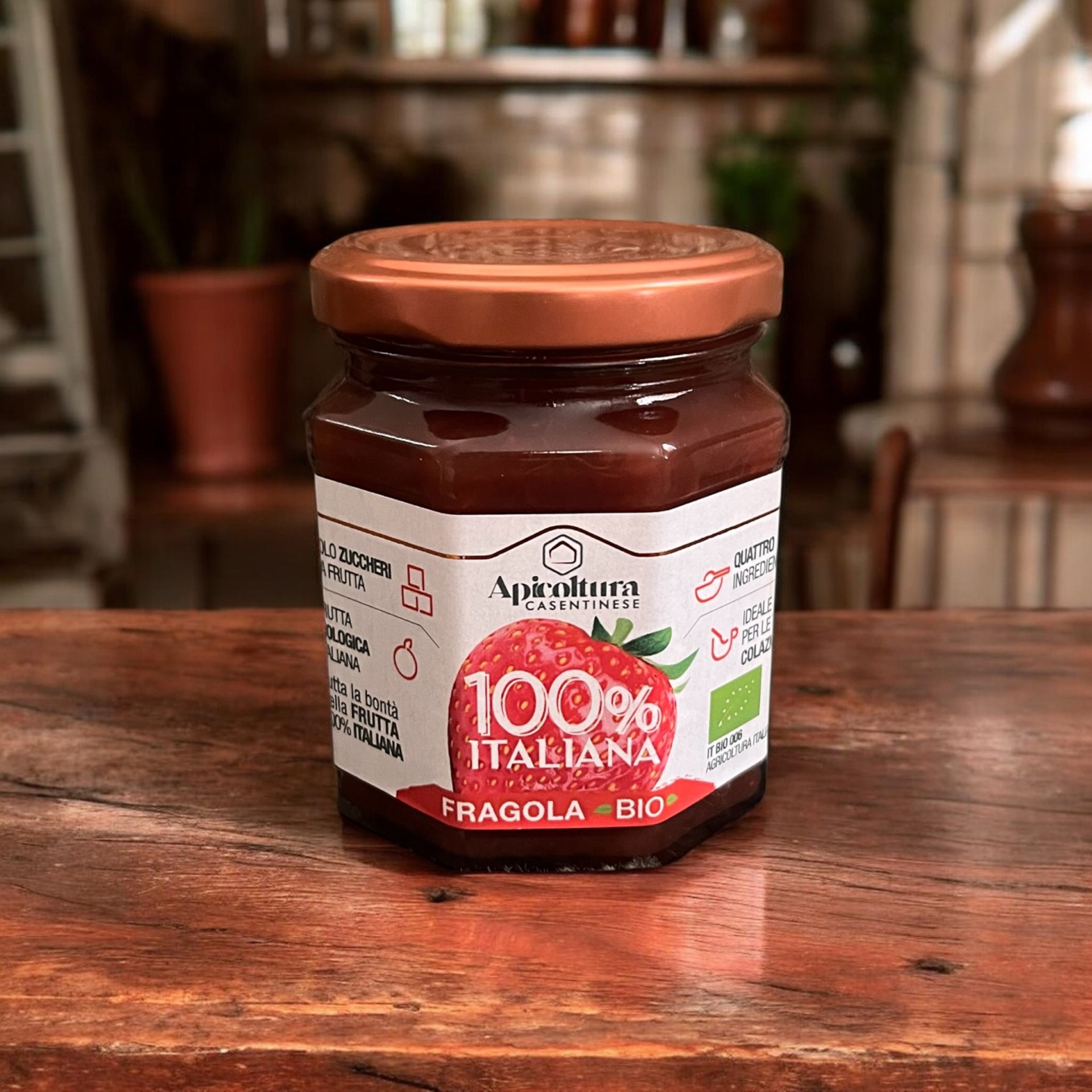 Bio jahodový džem od talianskeho výrobcu Apicoltura Casentinese (často pod produktovou líniou SoloFrutta) je prémiová ovocná nátierka, ktorá sa vyznačuje zložením bez pridaného repného cukru a zahusťovadiel.