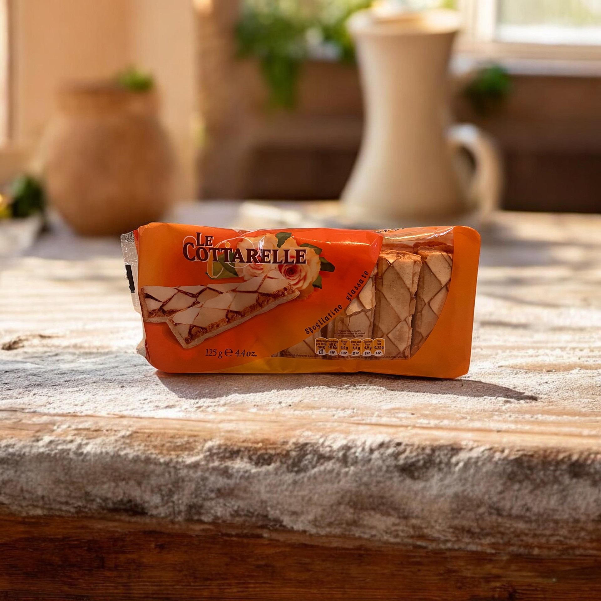 Asolo Dolce Le Cottarelle Sfogliatine Glassate (125 g) sú prémiové talianske tyčinky z lístkového cesta s charakteristickou sladkou polevou. Tento produkt od rodinnej firmy Asolo Dolce patrí k tradičným talianskym sladkostiam vyrábaným v regióne Veneto.