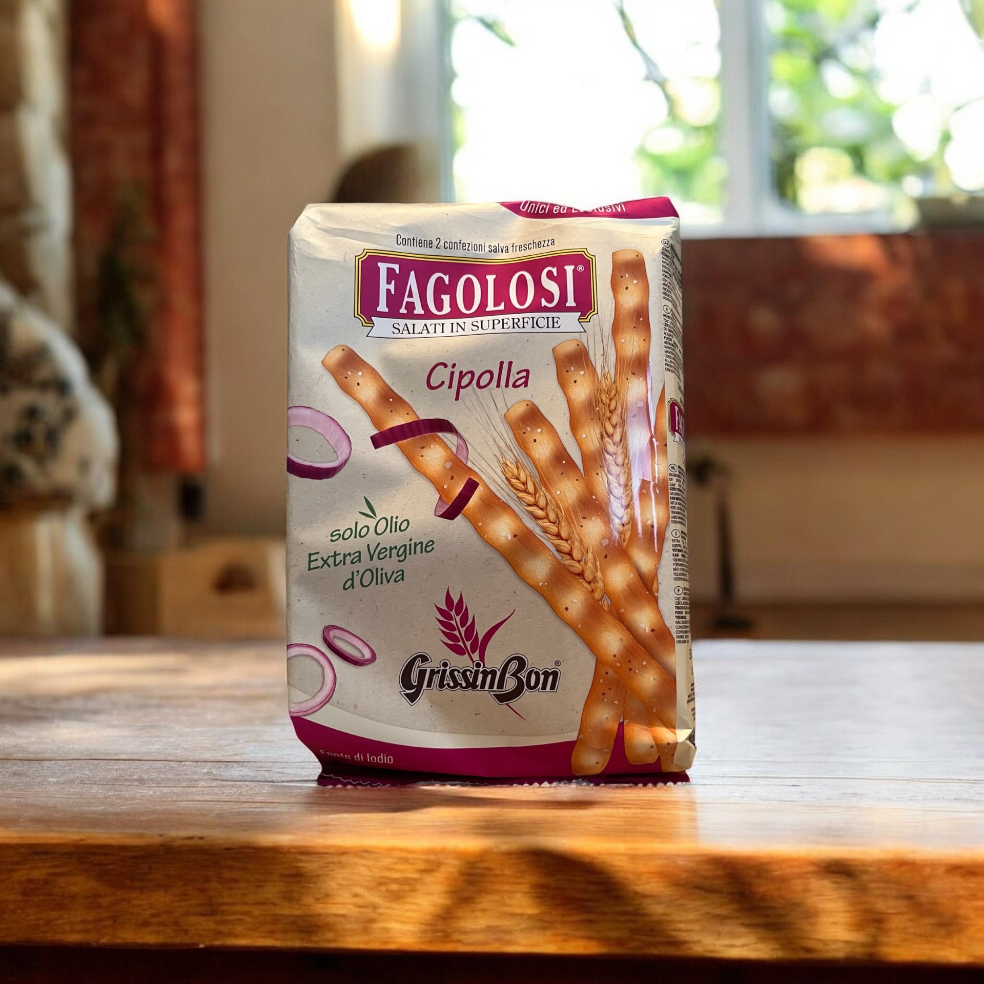 Grissini Fagolosi s cibuľou (250g) od talianskej značky Grissin Bon sú obľúbené chrumkavé tyčinky, ktoré sú typické svojím remeselným vzhľadom a výraznou chuťou.