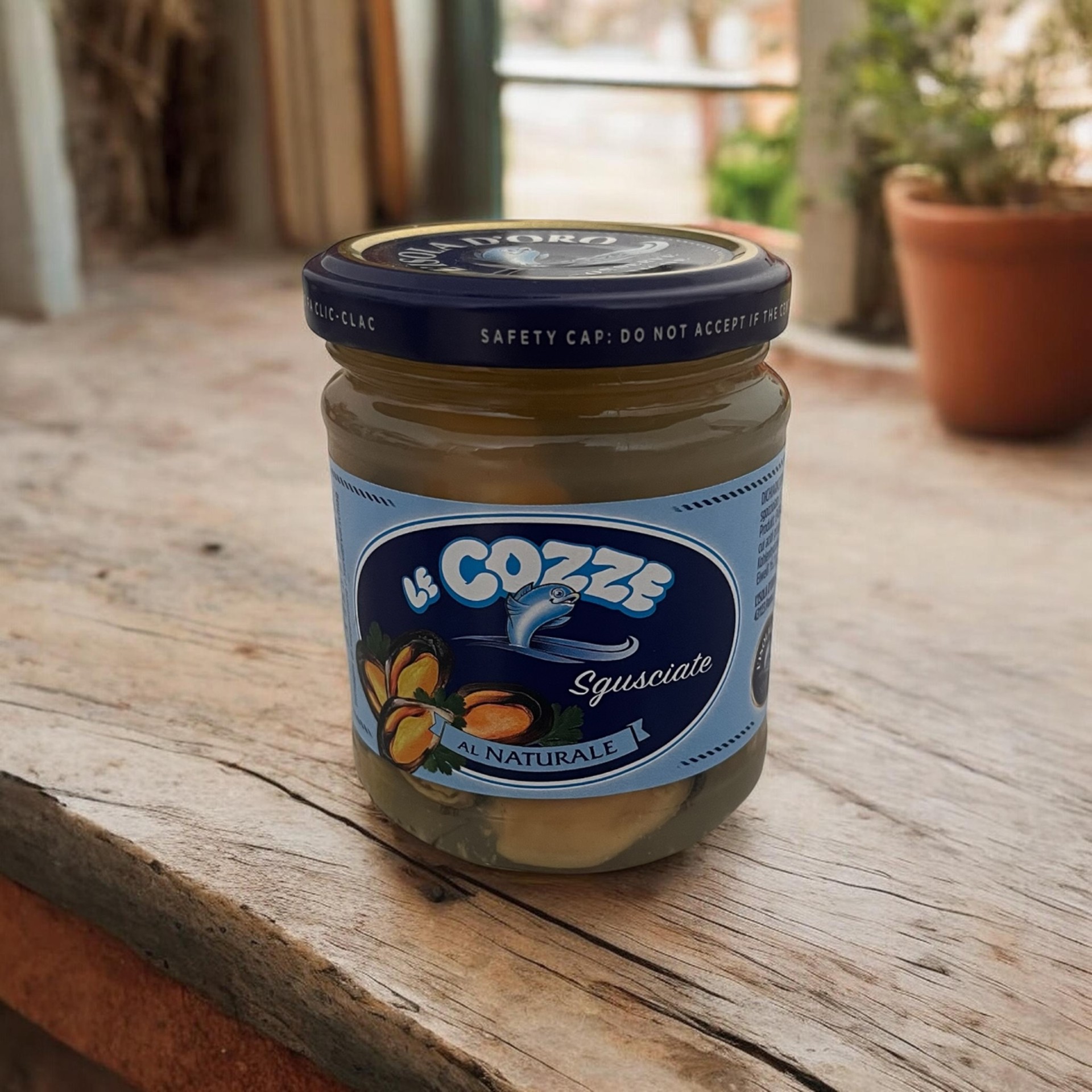 Le Cozze Lúpané mušle (190 g / 95 g) sú predvarené slávky v prírodnom slanom náleve. Tento formát je veľmi obľúbený pre svoju praktickosť a dlhšiu trvanlivosť v porovnaní s čerstvými mušľami.