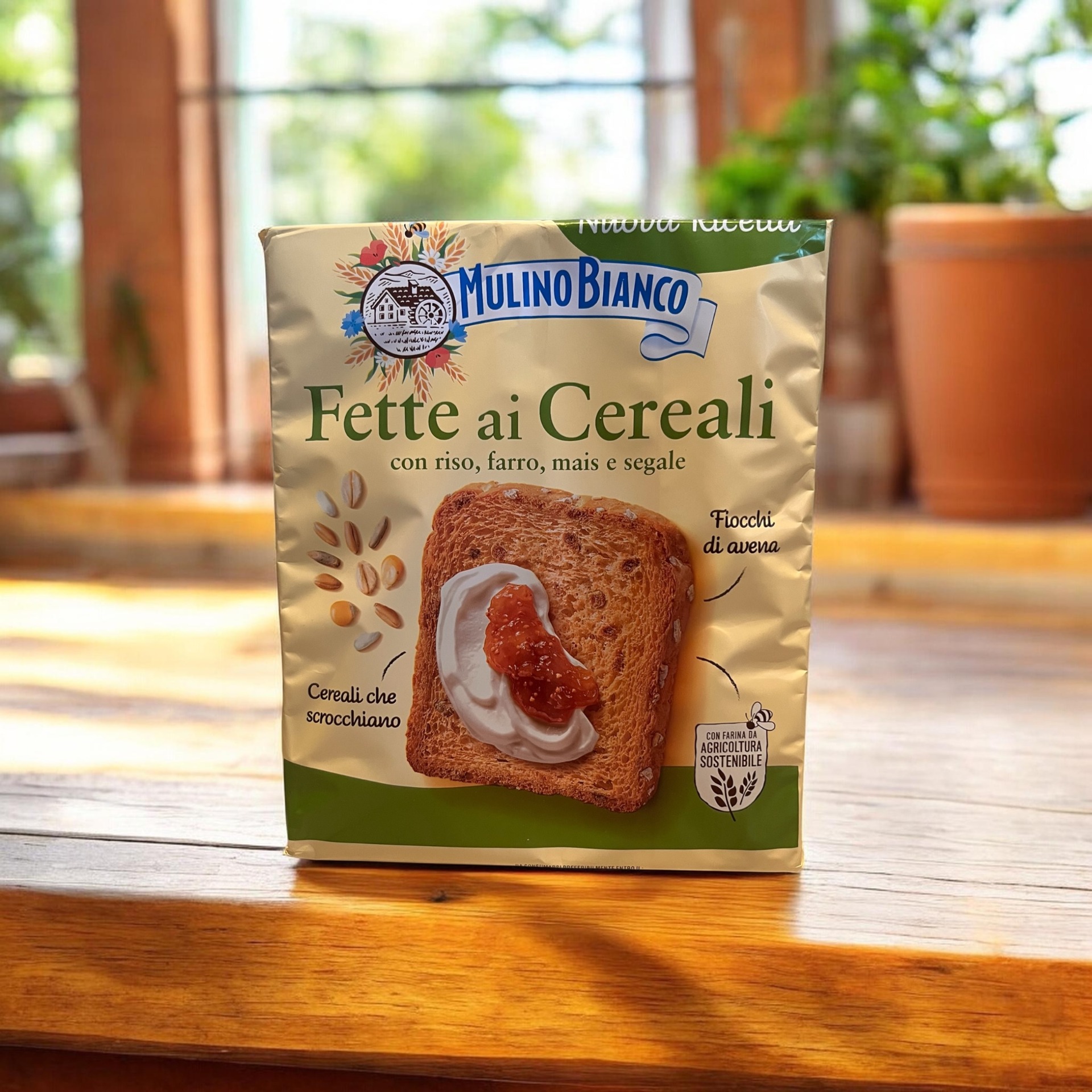 Mulino Bianco Fette ai Cereali (315 g) sú obľúbené talianske sucháre (fette biscottate), ktoré v sebe spájajú chrumkavosť a výživnú silu viacerých druhov obilnín.