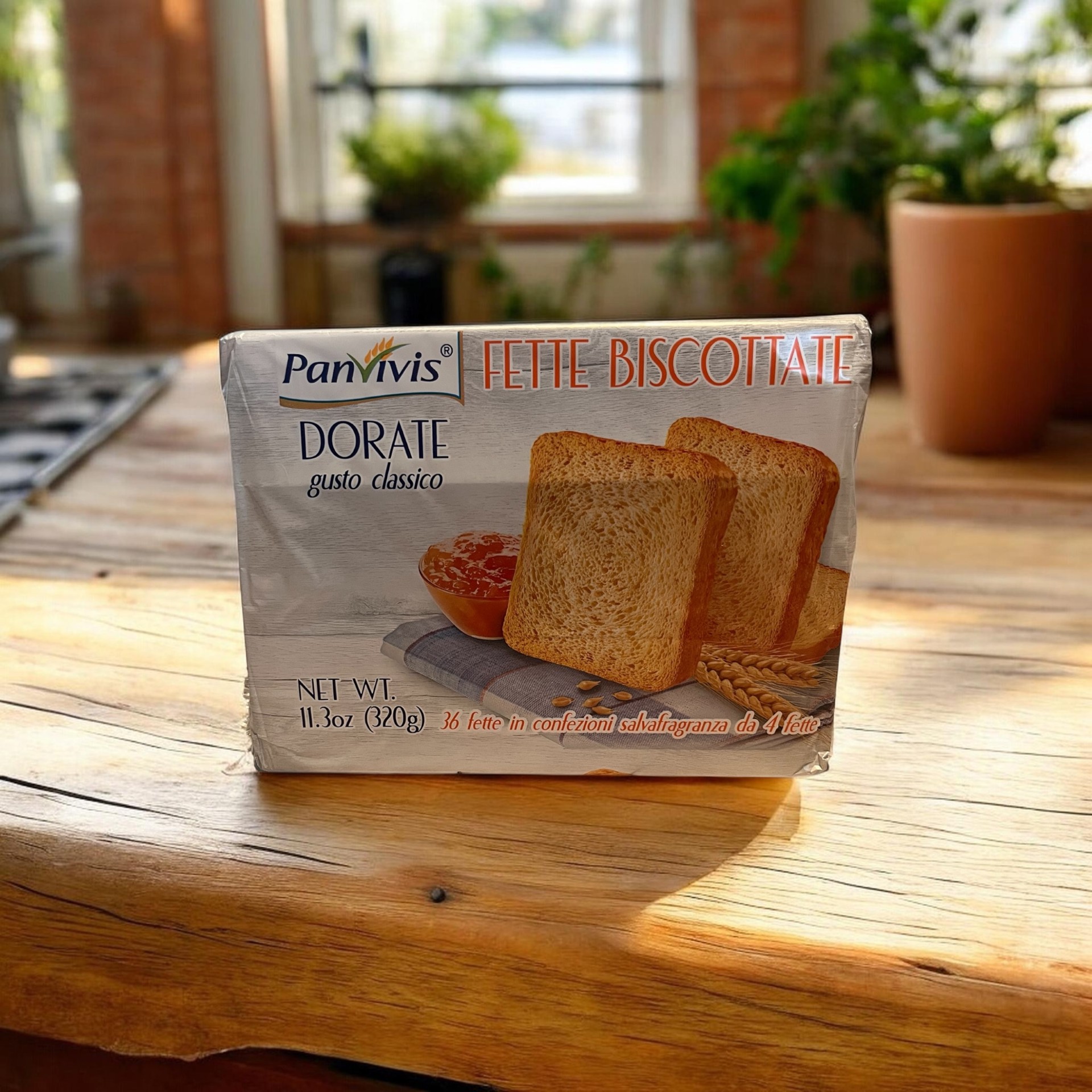 Panvivis Fette Biscottate Dorate Gusto Classico 320g sú tradičné talianske sucháre (fette biscottate), ktoré sú známe svojou chrumkavosťou a zlatistou farbou. Vyrába ich spoločnosť Il Vecchio Forno.