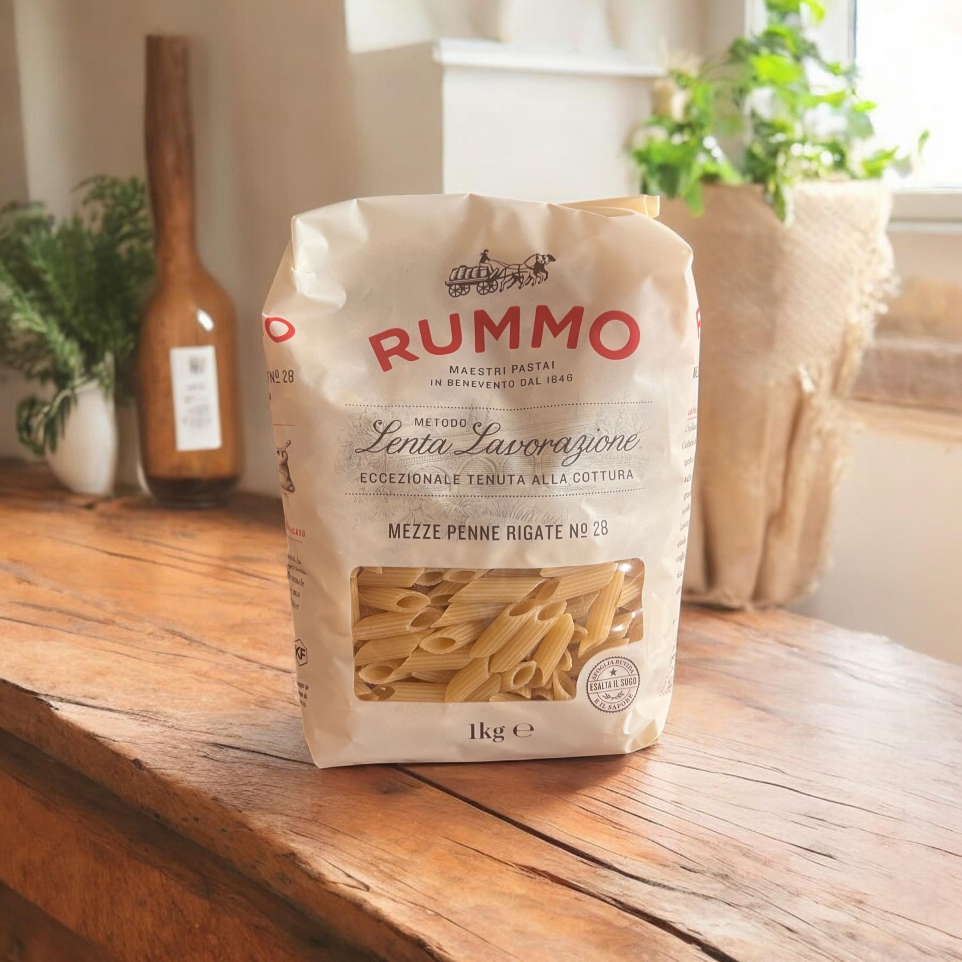 Rummo Penne Rigate n. 28 (1 kg) sú prémiové talianske cestoviny, ktoré sú celosvetovo uznávané pre svoju schopnosť udržať si dokonalú textúru "al dente" aj po dlhšom varení alebo ohrievaní. Využívajú unikátnu patentovanú metódu Lenta Lavorazione (pomalé spracovanie).